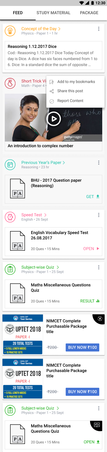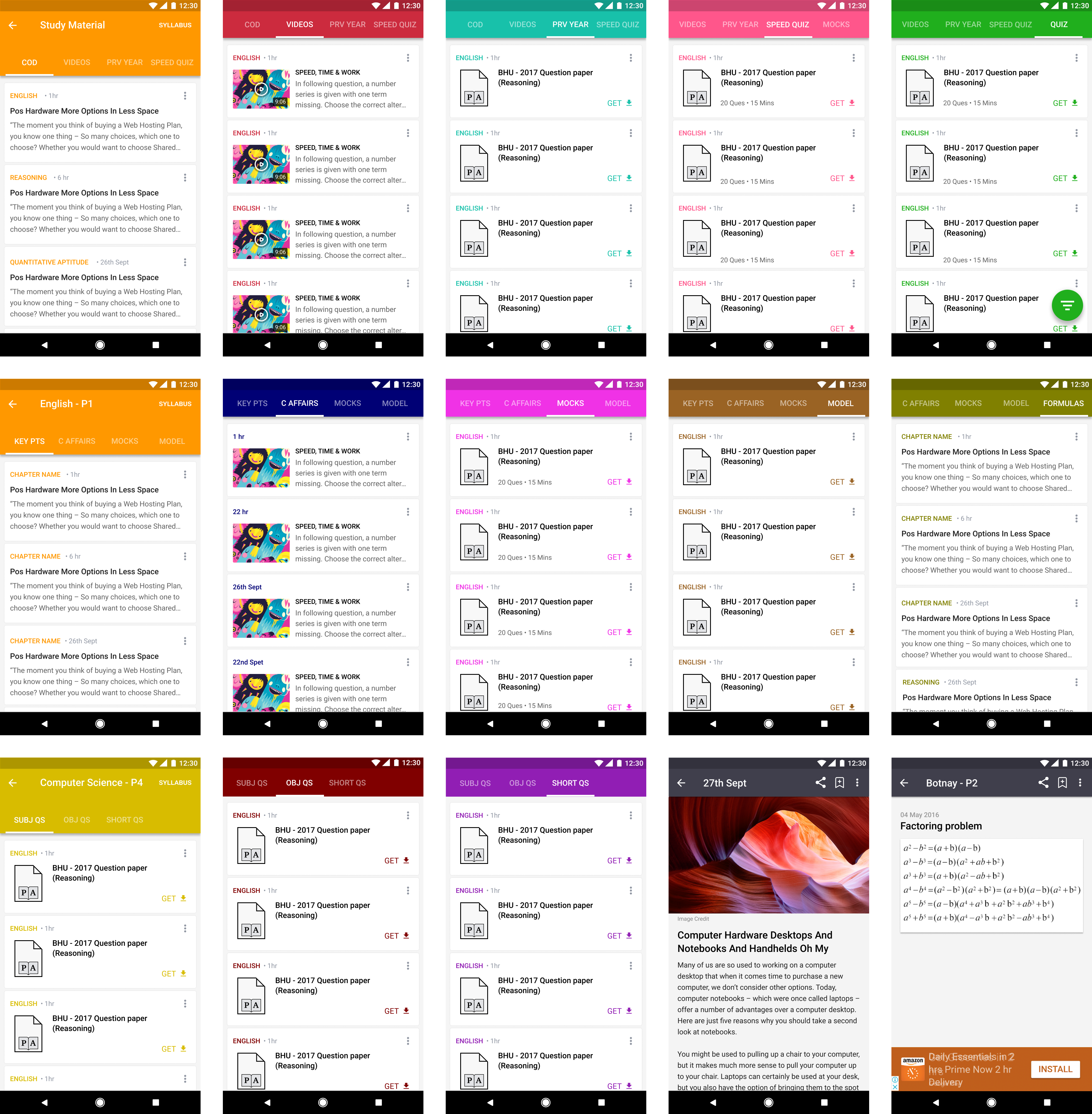 Previous Year Papers, Practise Objective, Key points,Mock Test, Speed Test, Subject wise Test, Short Trick Videos, Concept Of The Day, Practise Subjective, and Formulas.