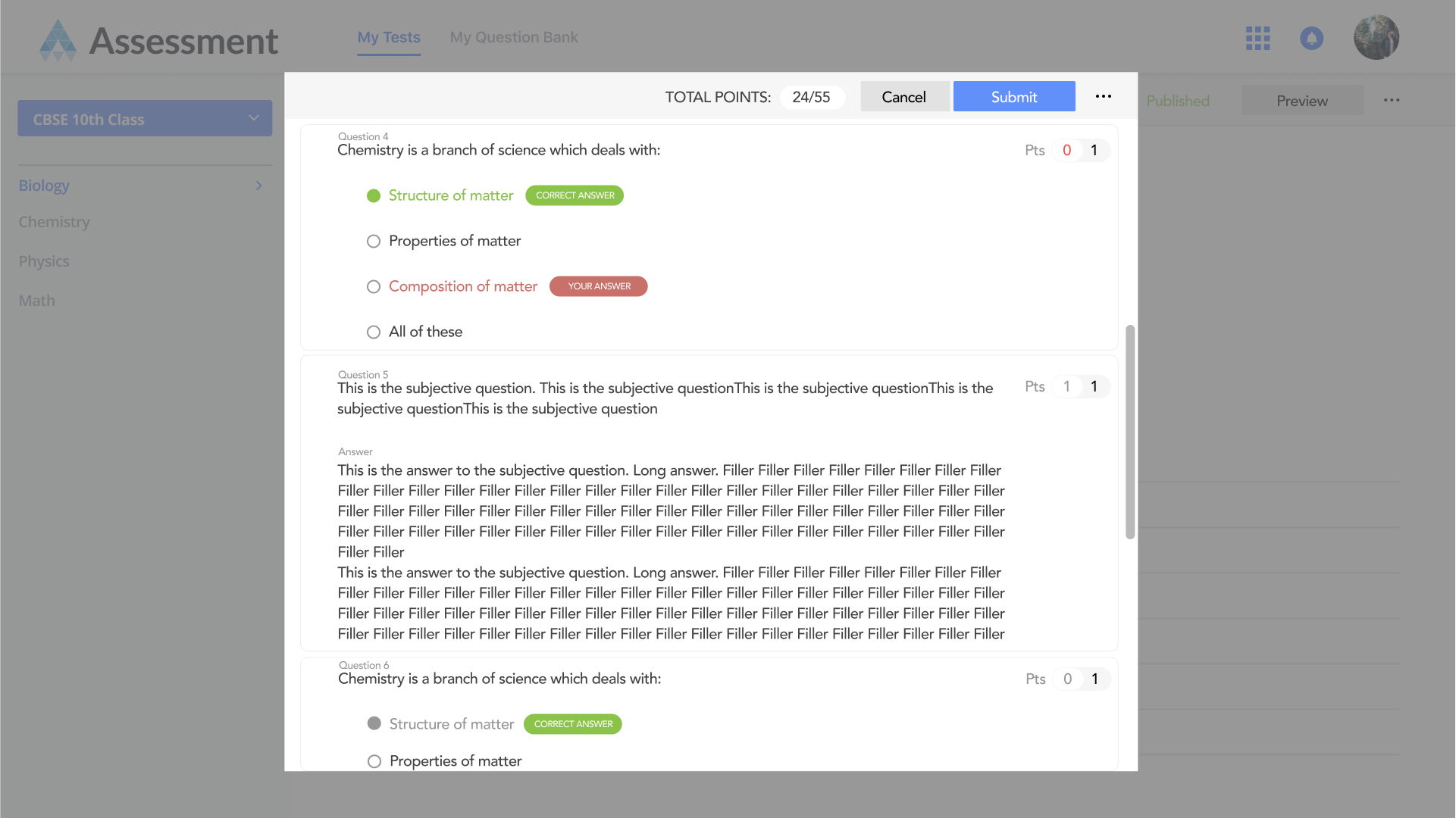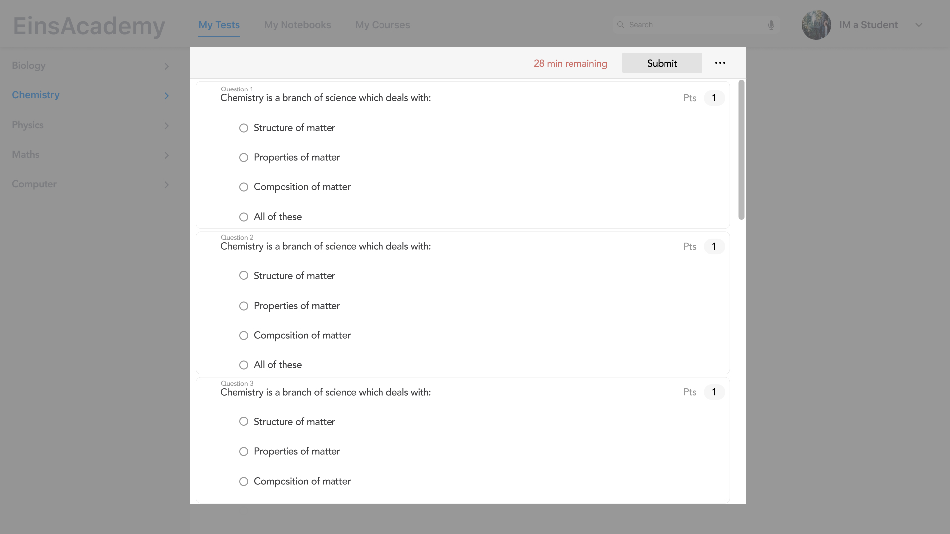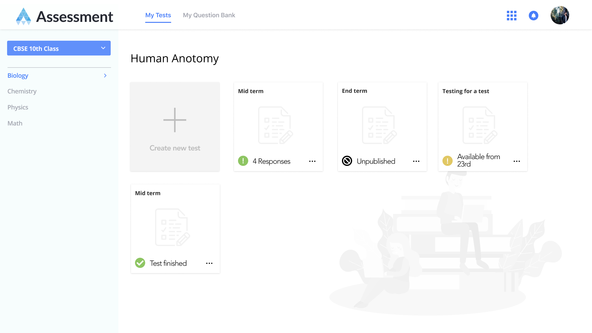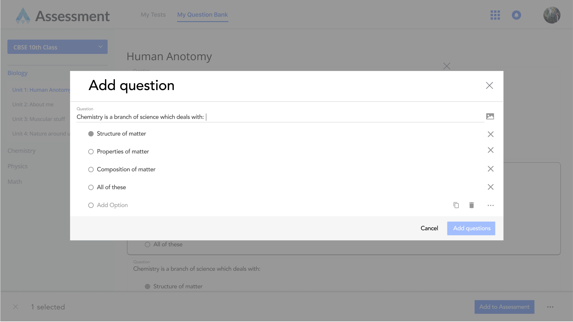 einsAssess, to assist teachers, provides a feature to generate quick questions though some paragraph using ML, and also provides a question bank where you can store questions for future uses.