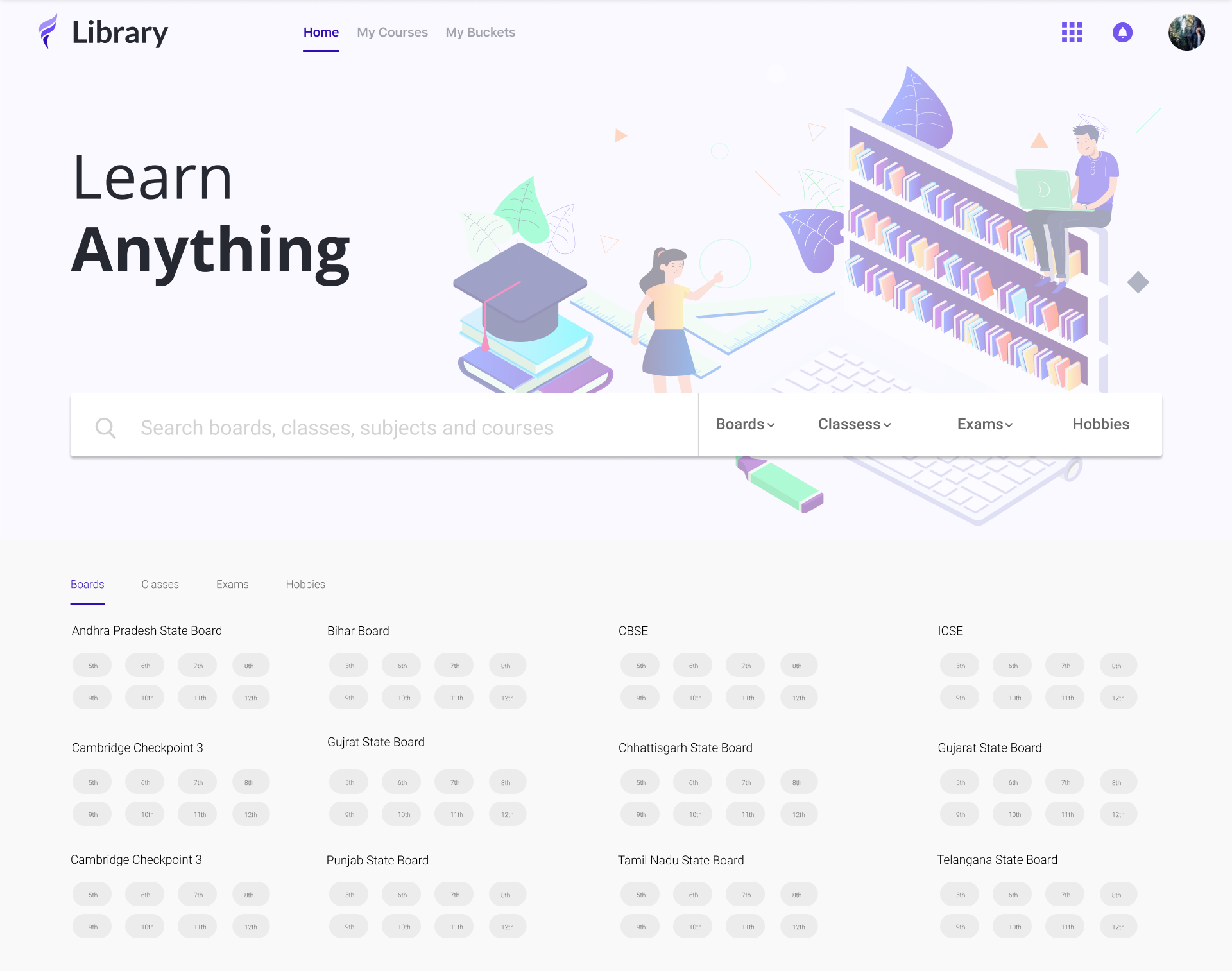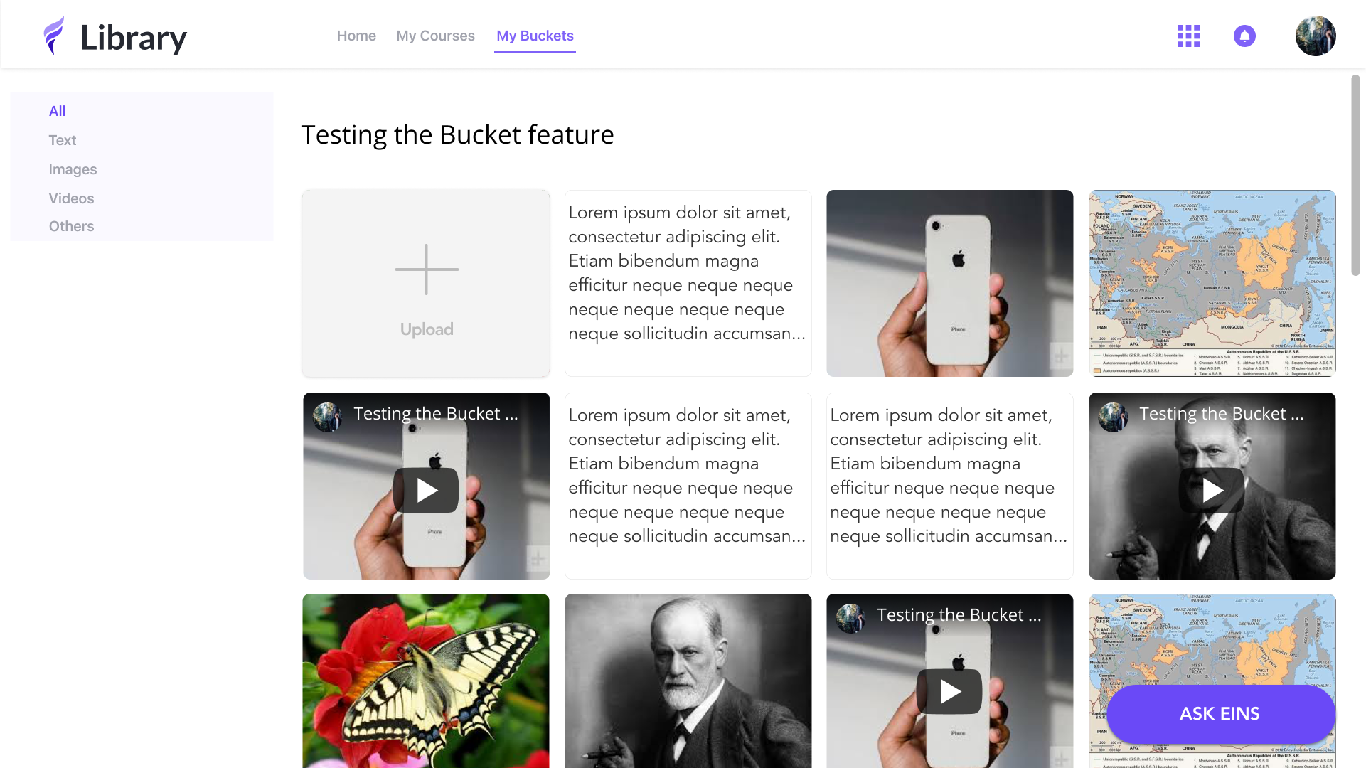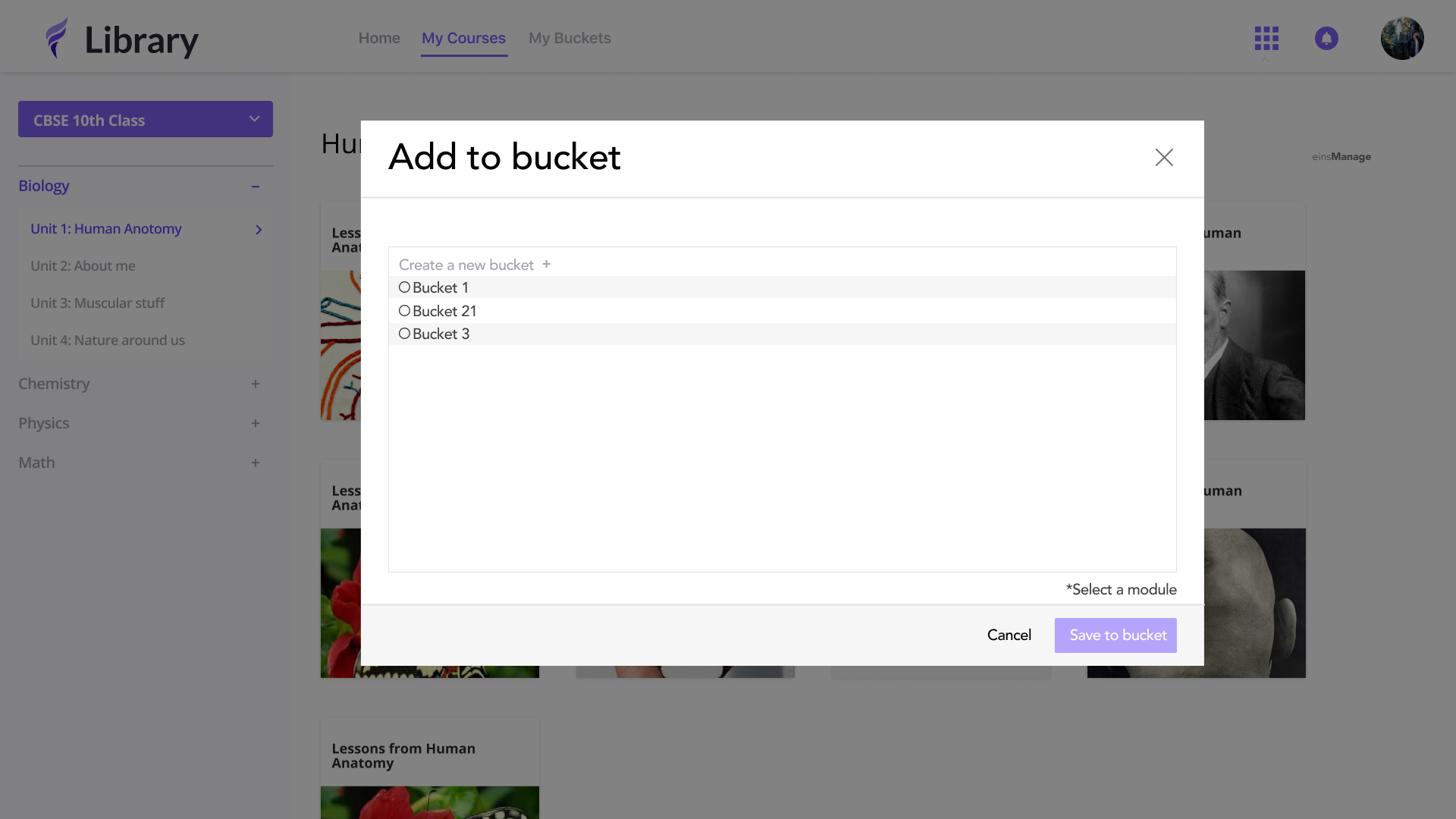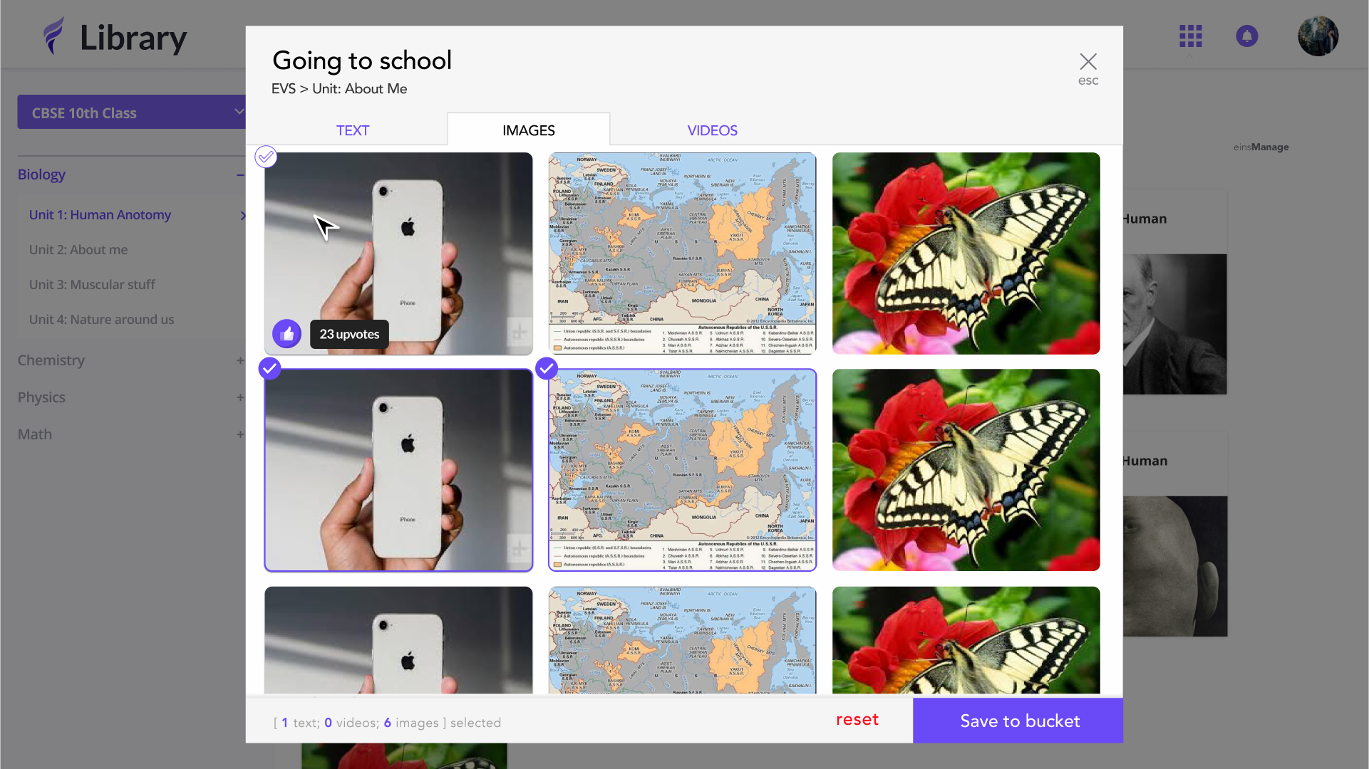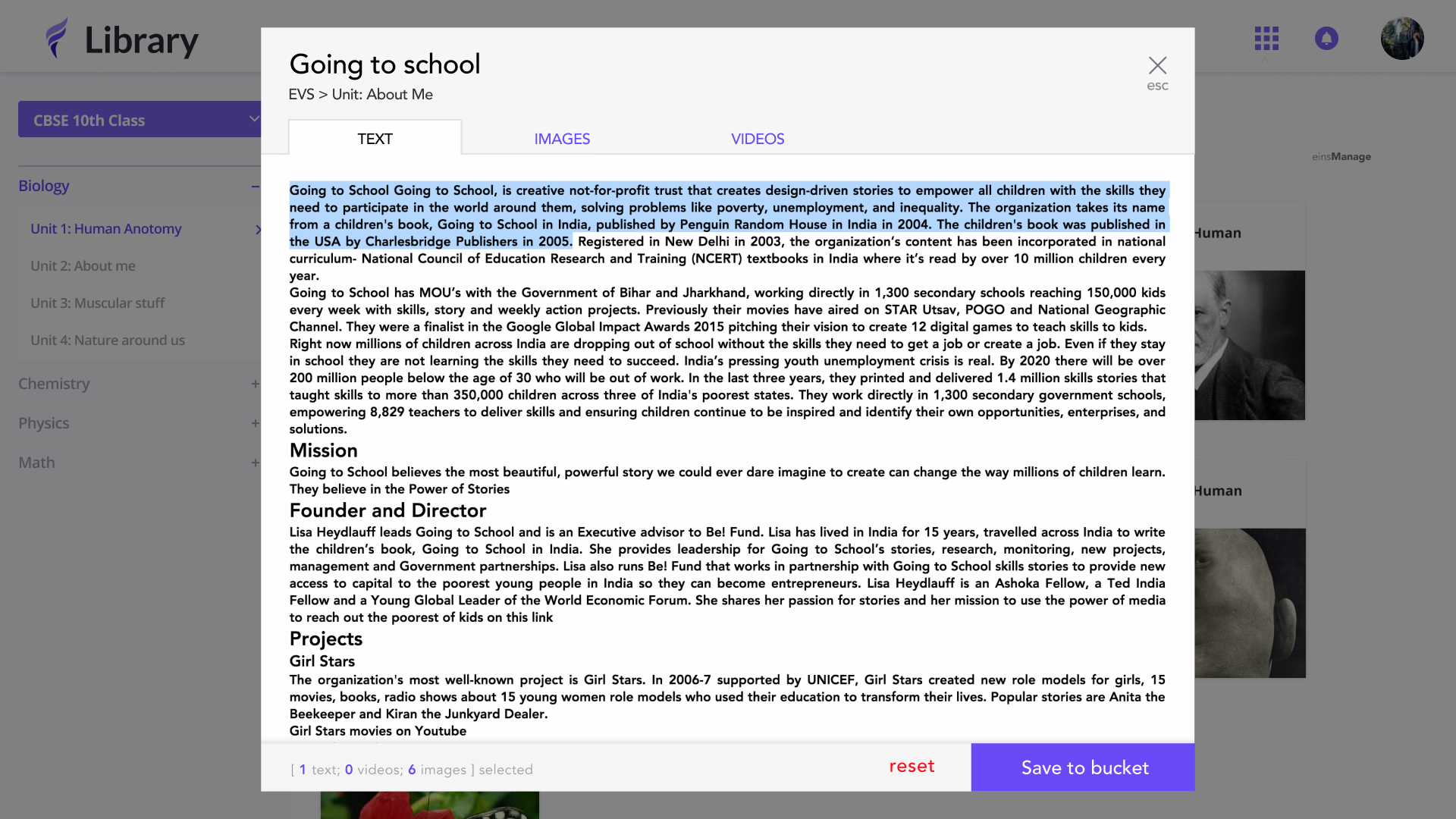 einsOS provides teachers content for planning their lessons. You can search for content through einsLibrary and add them to buckets which when required can be accessed in einsClass during live lectures.