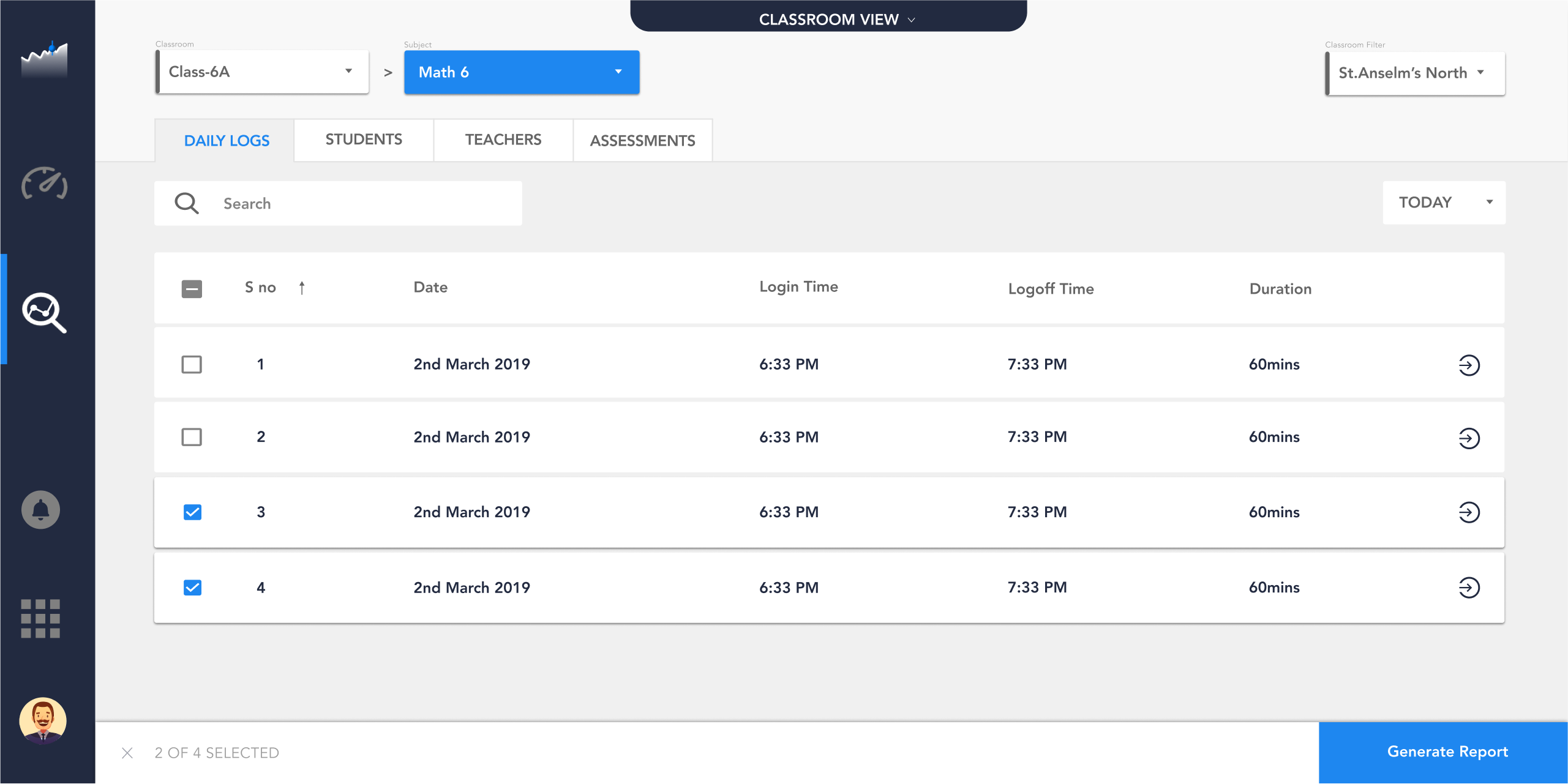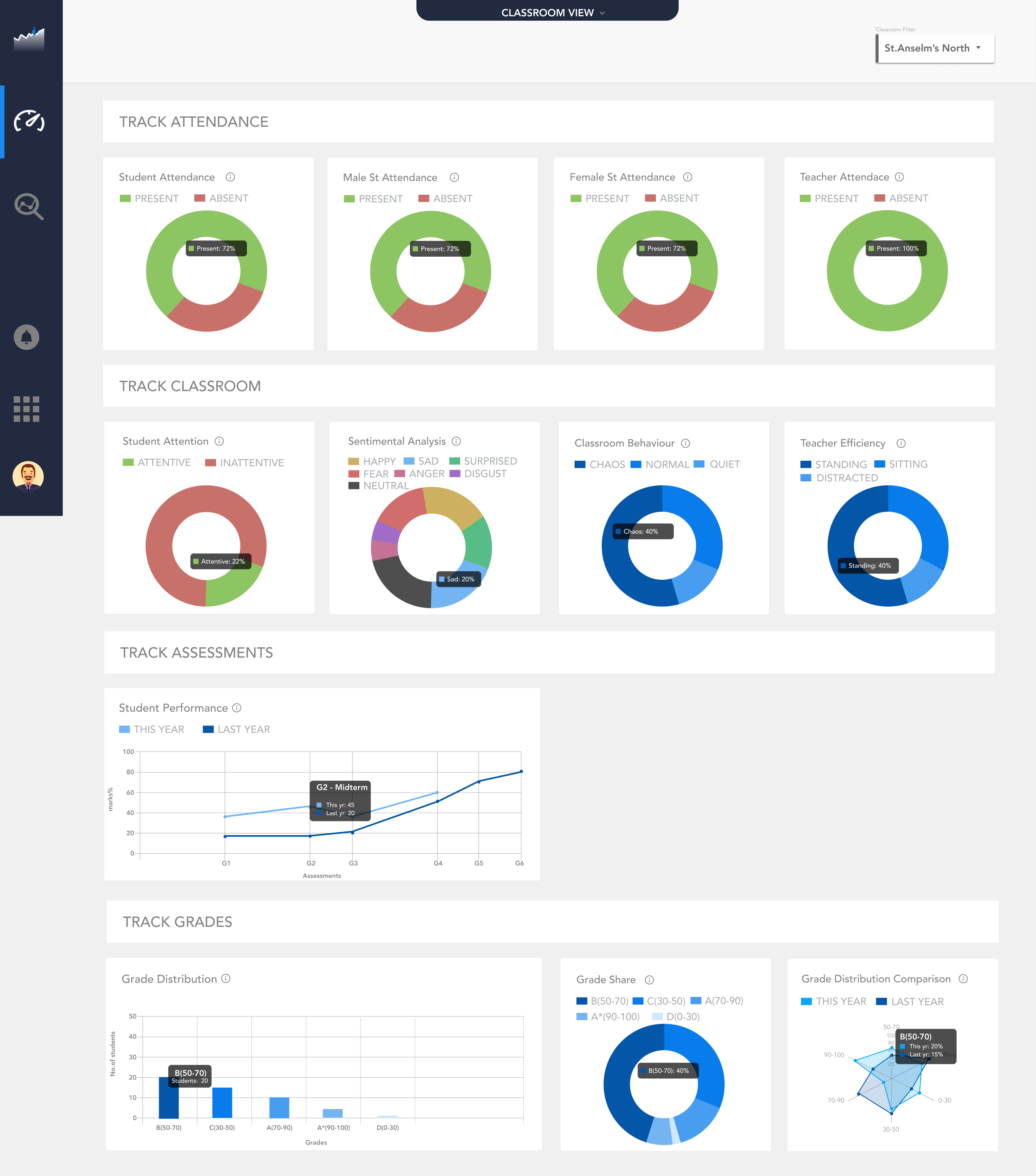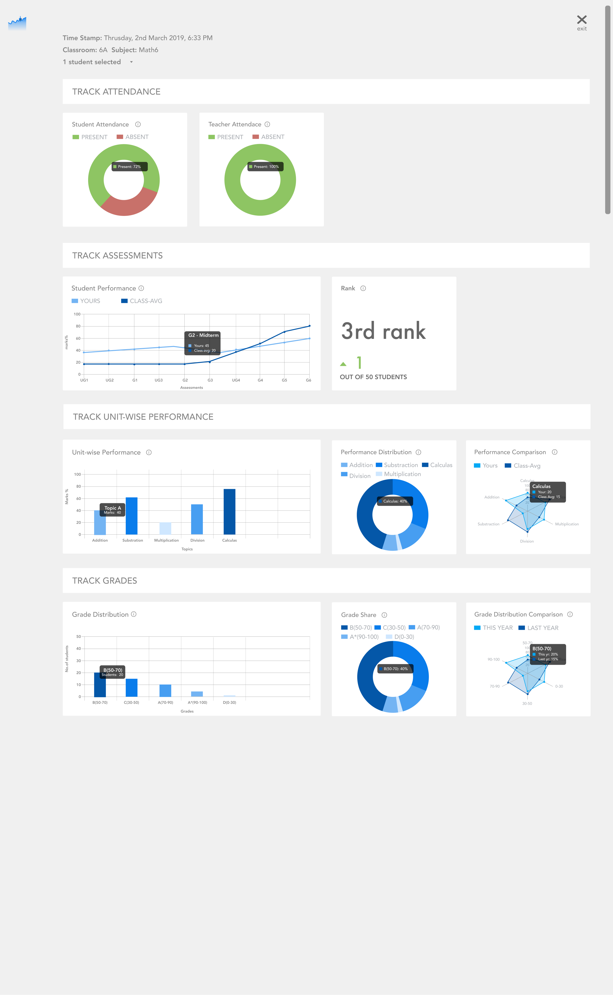 einsOS come with with grading and reporting features, one can also track the utilization of installed devices in classes and monitor the progress made.