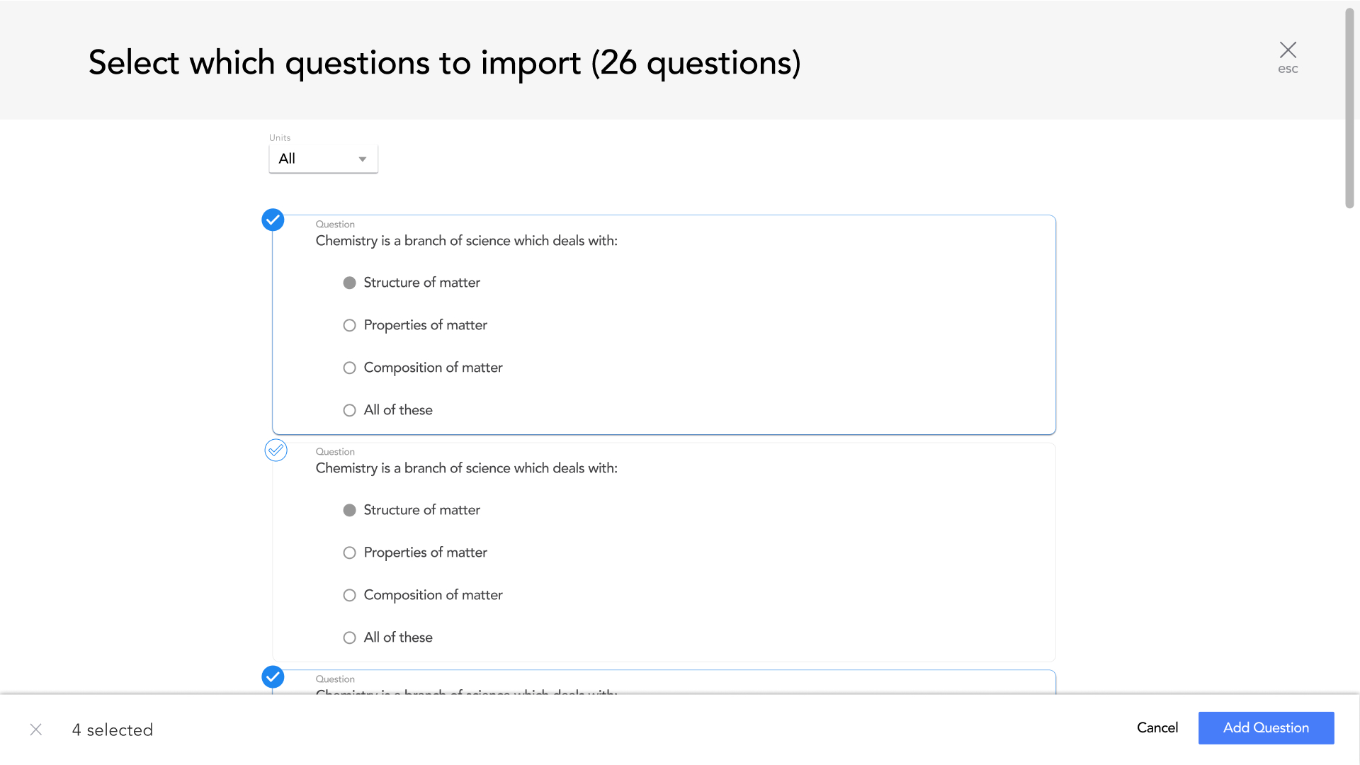 Importing questions in Assessment Builder from the Question Bank by Teachers