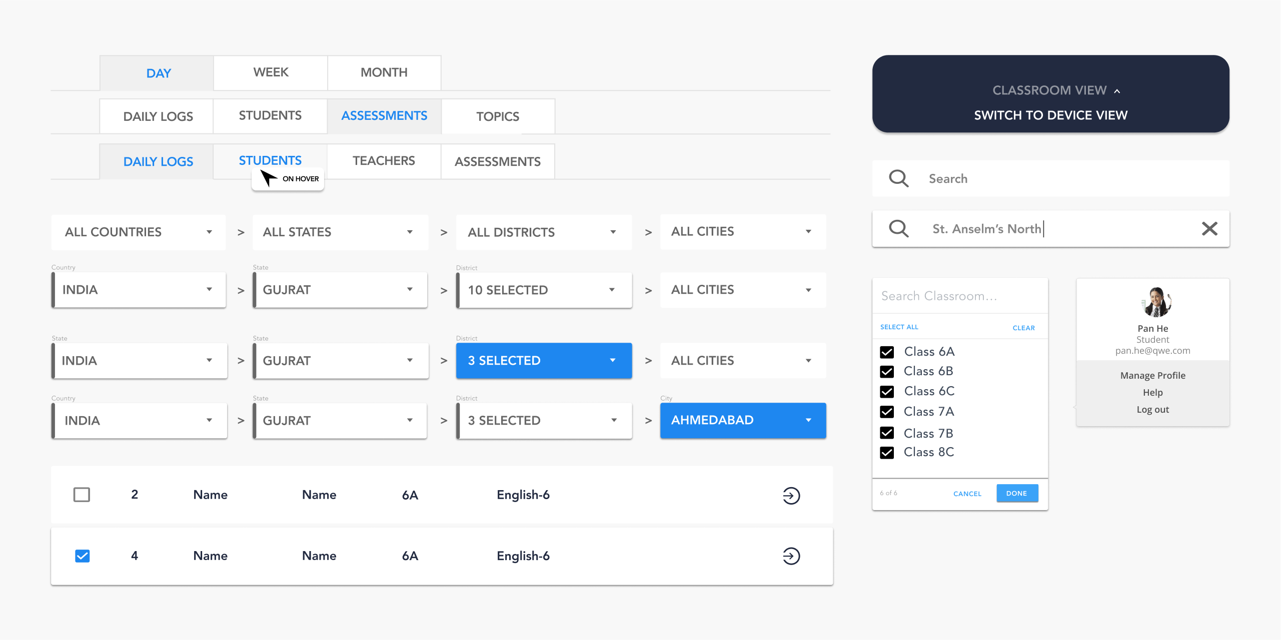 We referred to “Harish” the teacher and “Rohit” the student personas during everyday discussions, which bought clarity regarding the stories we were trying to solve, and helped us all (Dev+Design+PM) empathize with the users and do the due diligence required to make our personas feel comfortable using our product.